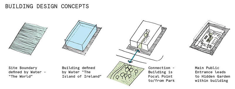 Idea. Envision the House of Ireland as a microcosm of the entire Isle of Ireland, encapsulated within the confines of a single building structure. It aims to distil and convey the quintessence of all things Irish right in the heart of Tokyo.