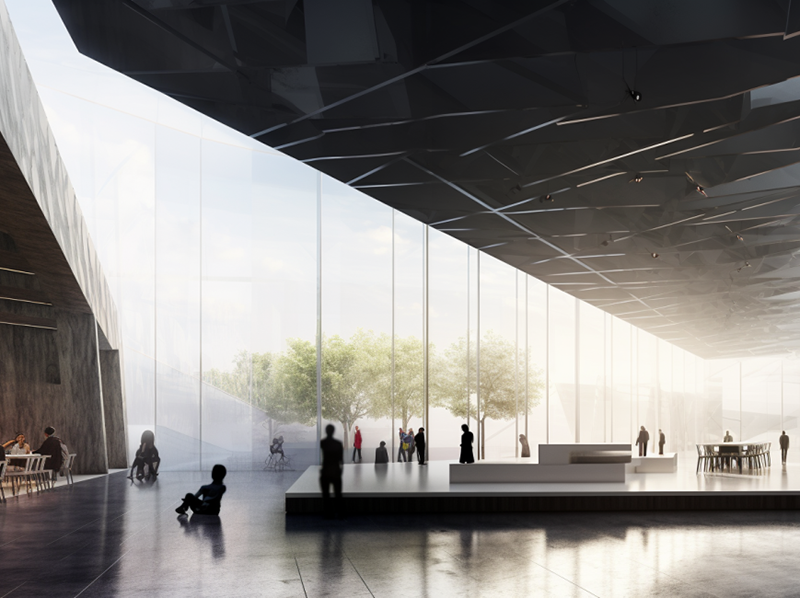 The entrance to the building is conceptualized as a crevice amidst a rock formation, subtly guiding visitors inwards. This deliberate design choice draws inspiration from natural caves and gorges, evoking a sense of intrigue and wonder. As one approaches, the gap gradually widens, revealing the intricacies of the interior, while simultaneously offering a tactile experience reminiscent of venturing into a cavern or natural sanctuary. This entrance not only serves a functional purpose but also tells a story, bridging the gap between nature, architecture, and the rich cultural narrative the building aims to convey.